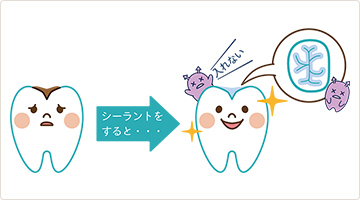 そこで、汚れが溜まるのを防ぐために、あらかじめ溝をプラスチック樹脂で埋めることで、むし歯を未然に予防します。