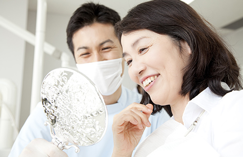 歯を失ってしまった場合、さまざまな治療方法があります。費用を抑えたい・見た目を重視したい・機能面を改善したい…などご自身に合った治療方法が必ずあります。現在お使いの入れ歯でお悩みの方、入れ歯を検討中の方、患者様お一人おひとりに合った治療方法をご提案させていただきます。どんな些細なことでもお気軽にご相談ください。