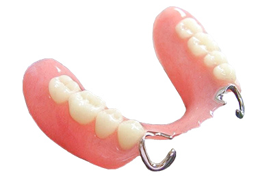 支えとなる歯が残っている場合に可能な補綴方法です。失った部分の歯を補う人工歯と歯ぐきを補う床を作製し、留め具などを用いて固定します。