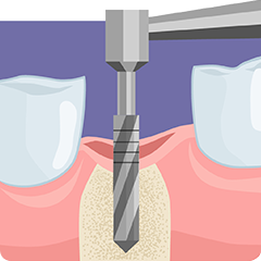 歯を失った箇所の歯槽骨にドリルで穴を開けます。
