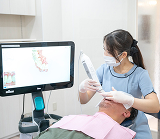 これまでの歯型採取は、シリコン製の印象材を直接お口に入れて行う方法が一般的でした。しかし「iTero」では専用スキャナーを使い、歯列を読み取るだけで型取りが完了します。精度も向上しており、嘔吐反射で従来の型取りが苦手だった方にも安心して受けていただけます。さらに、スキャンしたデータは即時にデジタル化され、治療シミュレーション(クリンチェック)の作成までの時間も大幅に短縮。従来は2〜4週間を要した工程が、iTeroなら2〜3日で確認できるようになっています。