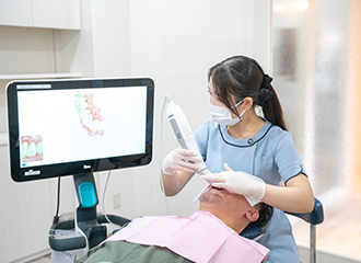 A,光学スキャナーiTeroを用いて治療のゴールを見ていただき、しっかり患者様に理解していただいた上で治療を行うことを大切にしております。