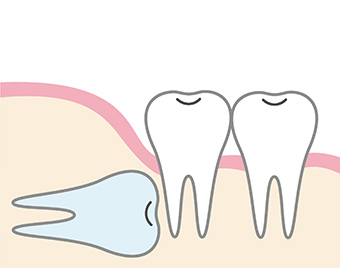 歯ぐきに完全に埋まっている状態。自覚症状がなく、レントゲン検査で存在が分かることがある。歯並びや顎関節に影響を及ぼすこともあるが、露出していないため、むし歯や歯周病の心配はない。他の箇所に影響がない限りは、抜歯の必要はない。
