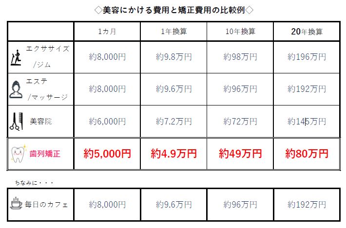 そこで矯正治療にかかる費用のイメージがわくように、美容にかける費用と比較してみました!
