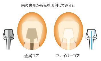 歯は光を通しますが、金属の土台はまったく光を透過しません。