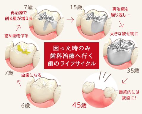 長い目で考えていただけるとわかりますが、むし歯は1度治せば終わりではないのです。