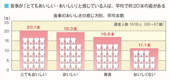 日本口腔保険学会の調査では、食事が美味しいと感じられる歯の本数が20本だとしています。