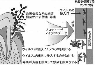 つまり、お口の中が不潔な状態を放置しておくとプロテアーゼの量が増え、インフルエンザの発症や重症化を招きやすくするというわけです。
