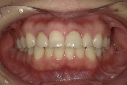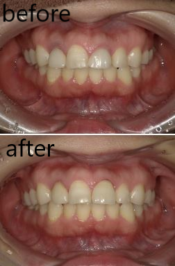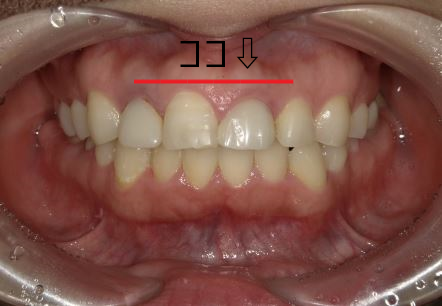 治療後すぐに撮影した写真なので歯と歯ぐきの境目が少し黒っぽくなっていますが、そのうち炎症も治まり綺麗な歯ぐきになりました!