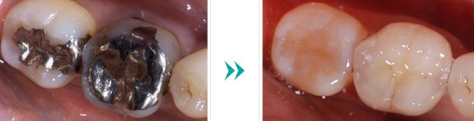 銀歯の詰め物を白い詰め物(イーマックスインレー)に変えたお写真がこちらです。