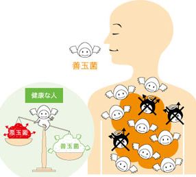 善玉菌を摂りそれを増やすことによって体の機能のバランスを正常に保ち、免疫力を高めることによって病気になりにくい体づくりをします。