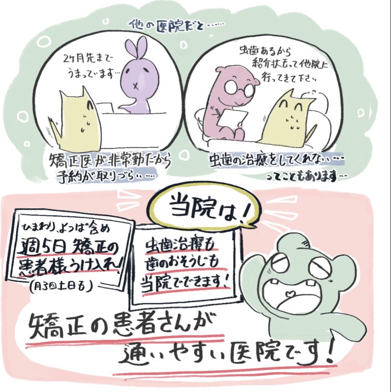 「矯正の患者さんが通いやすい医院だよ!ってことアピールして!」と