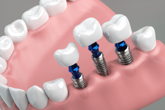 義歯は違和感があり、外れやすかったり食事もしにくい。ブリッジは両隣の歯を削らなければならない