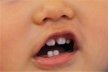 2.生後10カ月ごろ 上の前歯(乳中切歯)が2本生えてきます。