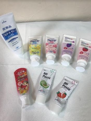 また、いろいろな種類の歯磨き粉のご用意をしておりますので、お子様にお選び頂いてお口の中のお掃除をしていきます(^^)/
