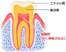 歯の内部には歯髄腔(しずいくう)と呼ばれる神経の通っている空洞があります。