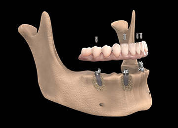 抜歯からインプラント埋入、仮歯の装着までを1日で行うことが可能な治療法です。顎の骨の状態にもよりますが、埋入するインプラントは最小4本で骨の移植などの準備もありません。