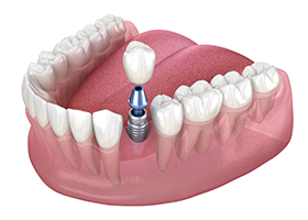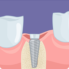 あごの骨の状態や治療方法によって異なりますが、埋入したインプラントが骨と結合するまで通常2〜6か月を要します。そのため、ブリッジや入れ歯より治療期間が長くなります。
