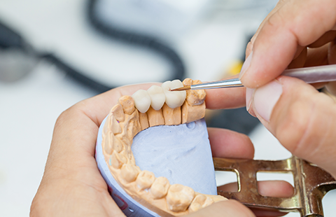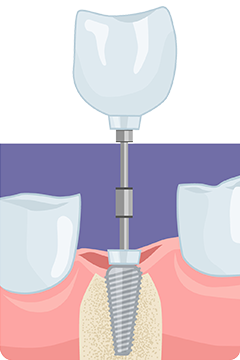 セラミックなどで作製した人工歯を、インプラントの上に装着します。天然歯のような見た目と機能を担います。