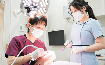 当院には歯科麻酔専門の医師が在籍しており、通常の局所麻酔に加えて静脈内鎮静法の併用も可能です。点滴によってウトウトとしたリラックス状態で手術を受けられるため、恐怖心や不安感を和らげる効果があります。