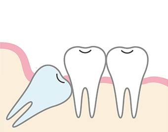 生えるための十分なスペースがなく、斜めに生え、一部分だけ露出している状態。歯と歯の間に汚れが溜まりやすくなり、むし歯や歯周病のリスクを高める。このタイプの多くは抜歯になる可能性が高い。
